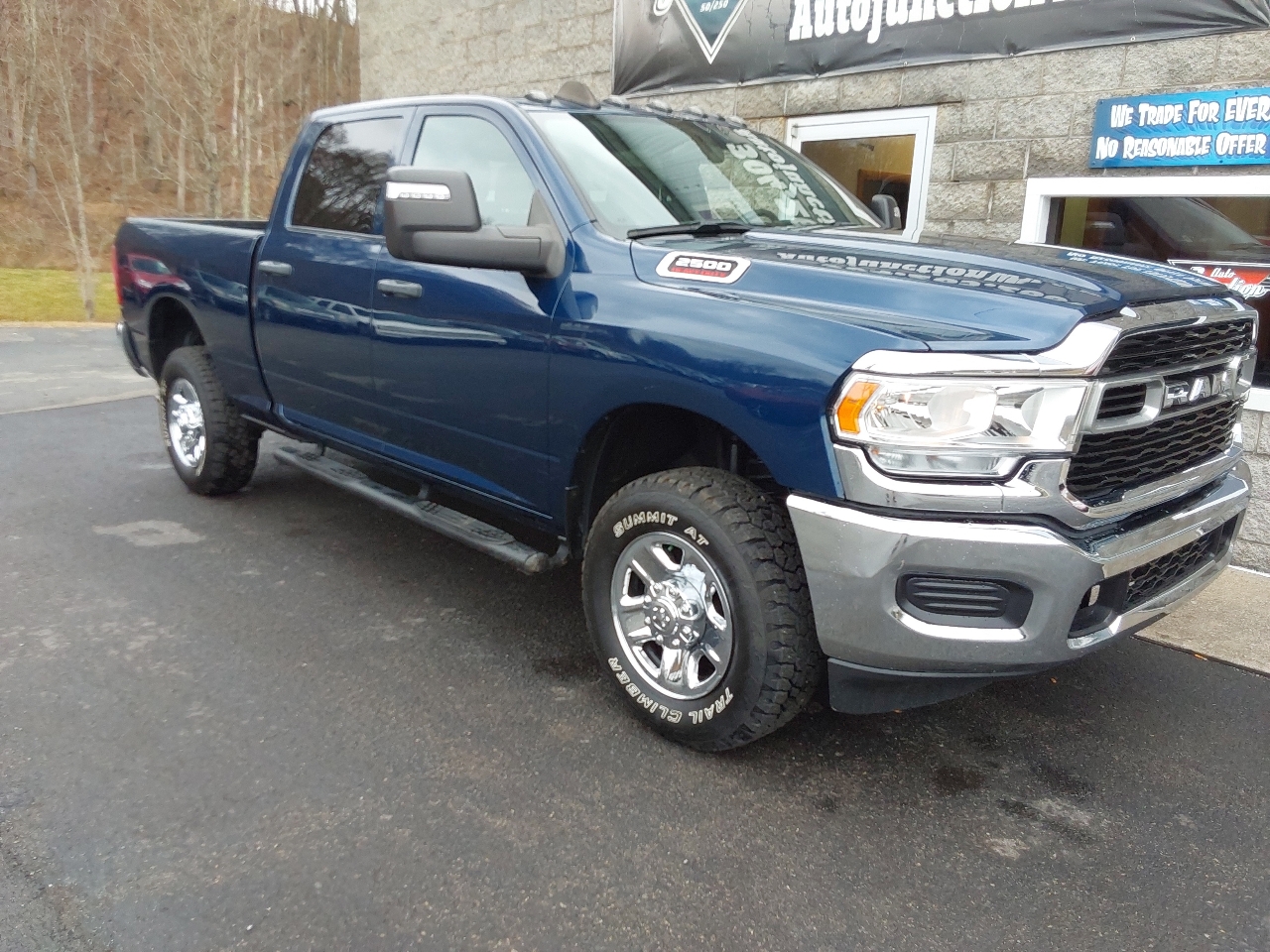 But that's not all – this Blue 2023 RAM 2500 also comes with a Carfax report, giving you peace of mind and transparency about the vehicle's history. With a sleek exterior featuring black trim and a rugged front bumper, this truck is sure to turn heads wherever you go.